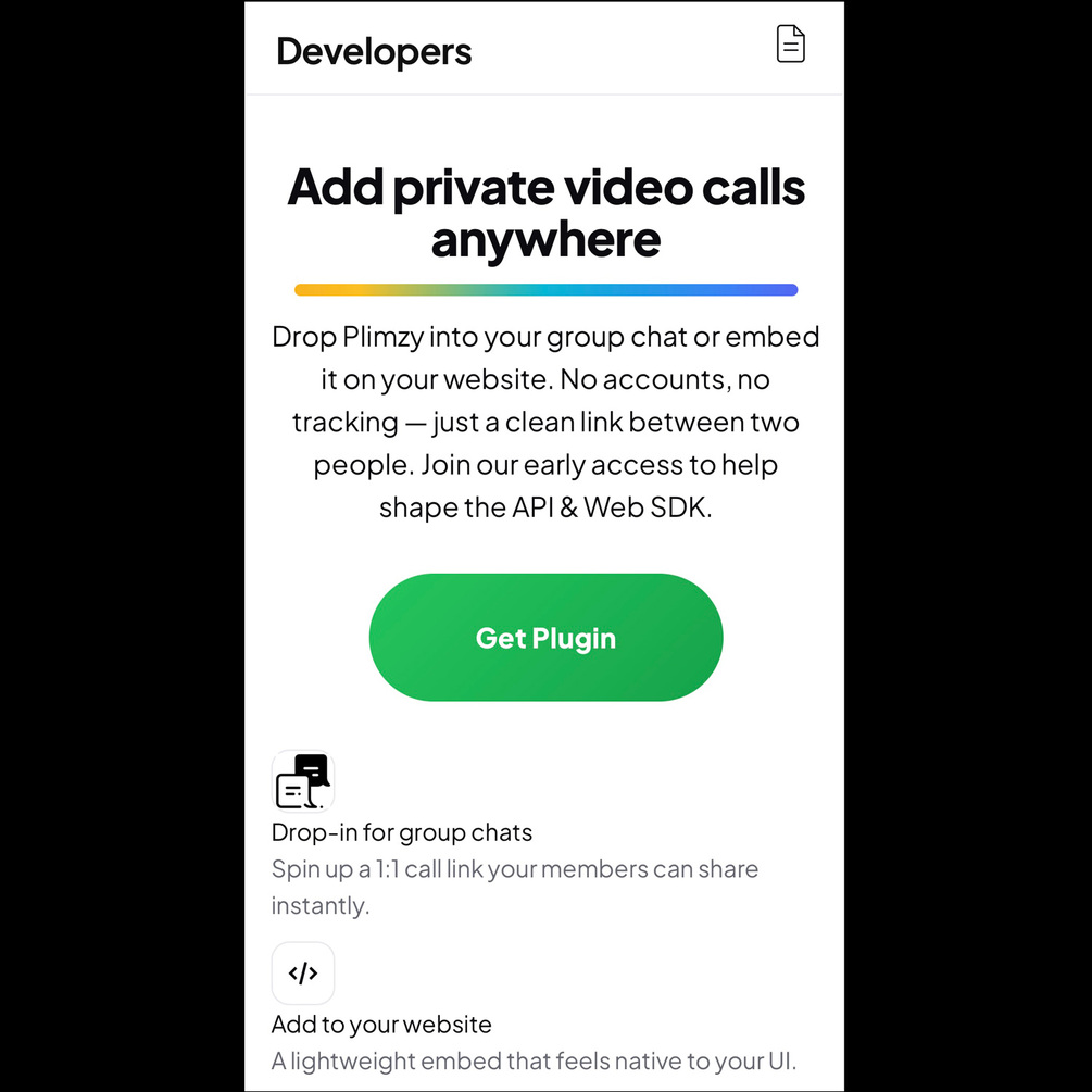 Plimzy Plugin — Add Private Video Calls to Your Site, Group Chat, or App